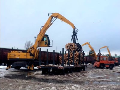 WLYS35型液壓輪胎式抓料機是一種流動式裝卸、堆垛和拆垛專用設(shè)備,含有多項專利技術(shù)。該產(chǎn)品采用折疊式吊臂,克服了汽車起重機軟索起重時抓斗易打轉(zhuǎn)和作業(yè)時無下壓力,而對較積實的物料抓取效果差等不足。是對草葦、木材、毛竹、廢紙、土、砂、石等泡松散軟原料進行裝卸、堆垛和拆垛作業(yè)的最佳設(shè)備。
