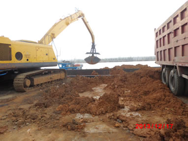 在江蘇某碼頭貨場(chǎng),八達(dá)重工為其專門設(shè)計(jì)了抓斗退料裝置,解決了該碼頭大量運(yùn)輸?shù)逆囃烈蛘承蕴蟾街谧ザ飞希灰椎袈涠绊懷b卸速度的問題,使鎳土卸船效率較老設(shè)備提高了好幾倍,贏得了客戶贊譽(yù)。