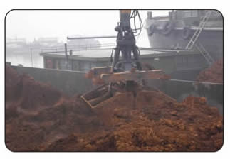紅土鎳礦油電雙驅(qū)雙動力抓料機在港口碼頭啟用